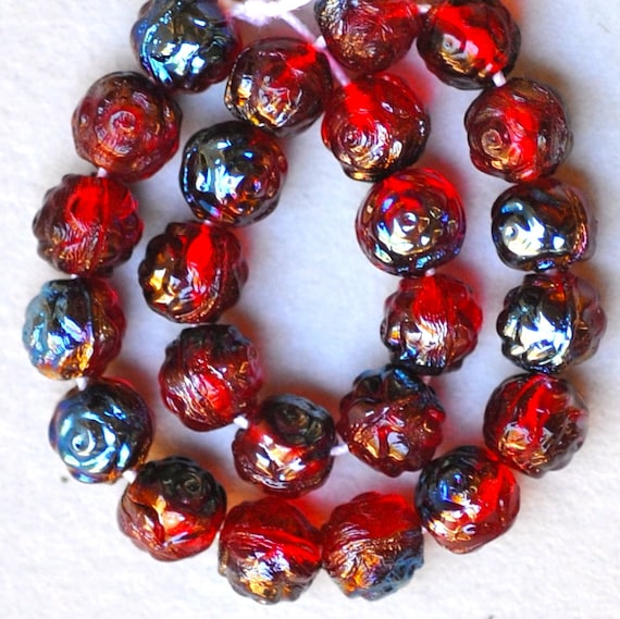 Tiny Rosebud Beads Czech Glass Beads Glass Flower Beads Etsy