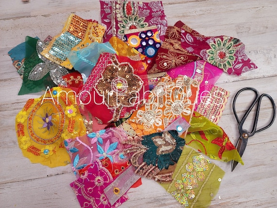 25 Boho Scrap Snippets Pack Beaded Fabric Boho Etsy
